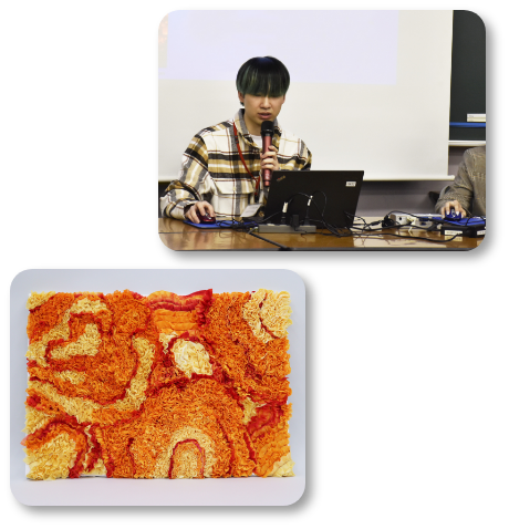 テキスタイル(素材)の基礎力を身につけ、アパレル素材の考案や作品制作まで、テキスタイルデザインを自由な発想で提案できる人材を育成します。
