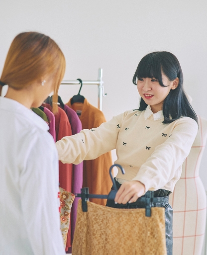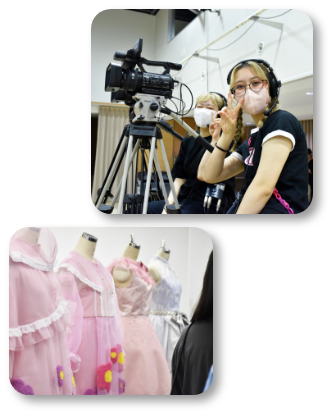 服飾表現学科では、脚本家や監督のイメージを形にしたり、俳優やアイドルの魅力を最大限に引き出したりなどメディアやエンターテインメントの世界で、服を通して「表現」を具体化するプロを育成します。