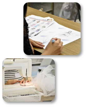 服飾学科では「造形技術(モードテクノロジー系)」と「ビジネス(ファッションビジネス系)」の2つの領域を通してファッション業界で活躍できる人材を育成します。